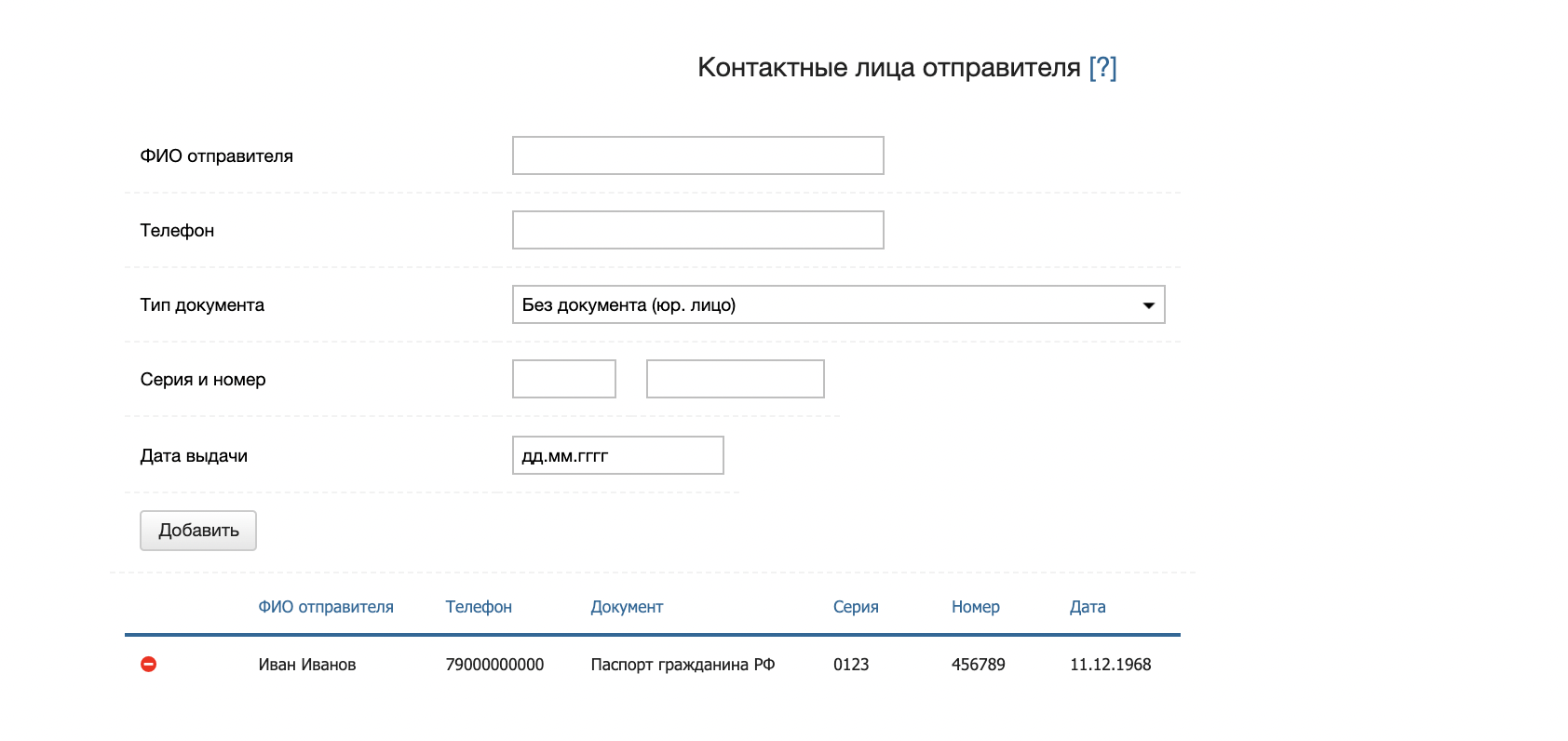 Контактные лица отправителя