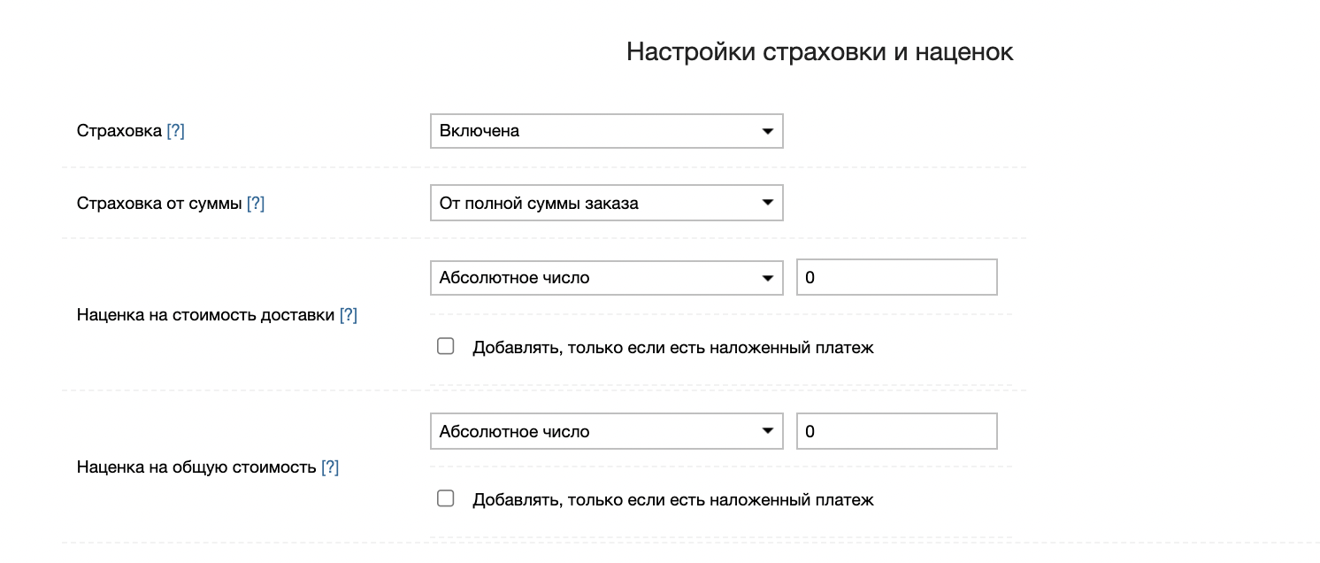Опция позволяет включать наценки только при включенной услуге Наложенный платеж****