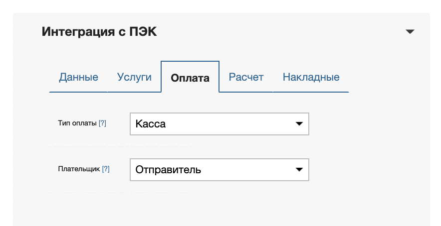 Данная опция определяет способ оплаты за услуги ПЭК. Доступны варианты: