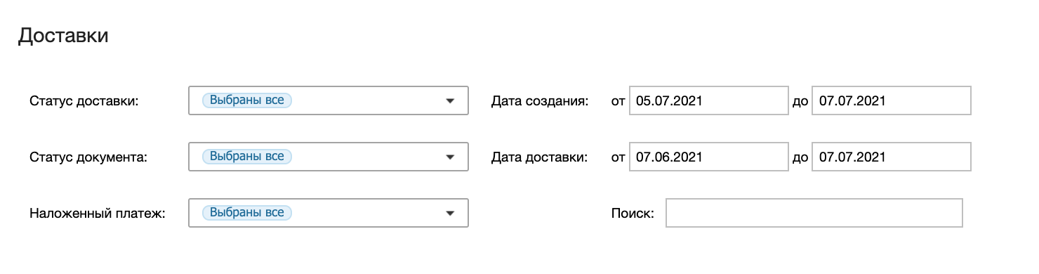 В разделе Доставки отображаются только доставленные накладные.