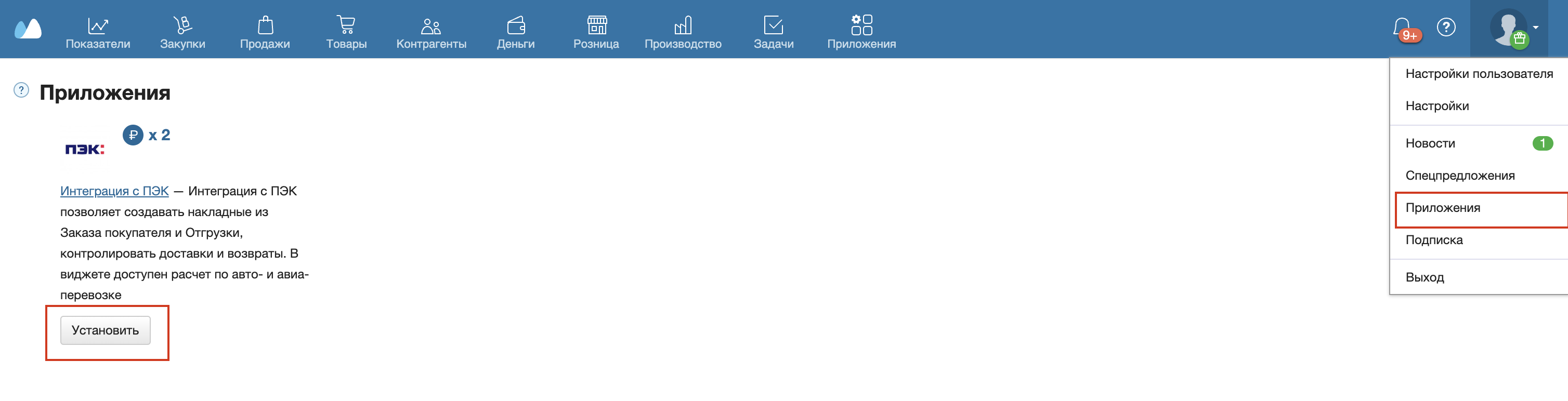 Приложения - В открывшимся списке найдите интеграцию с ПЭК